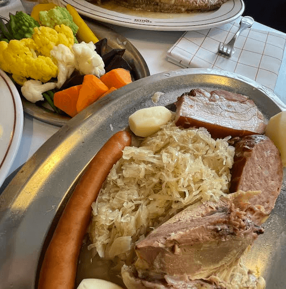 De mon côté de la table, c’était plutôt la première choucroute de l’année (33€). En cuisine, le chef vient d’Alsace, donc je vous laisse deviner le niveau de bonheur de mon petit palais. Afin de bien préparer mon Winter Body, j’ai même craqué pour une mousse au chocolat maison en dessert (11€).